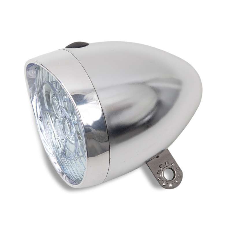 De oma-koplamp van Lynx: betrouwbare fietsverlichting met 3 heldere LED’s, om optimaal te zien en gezien te worden op de fiets. Chrome versie. De koplamp werkt op standaard meegeleverde (3x) AAA batterijen. Lichtsterkte van 11 lux en verpakt in werkplaatsverpakking.