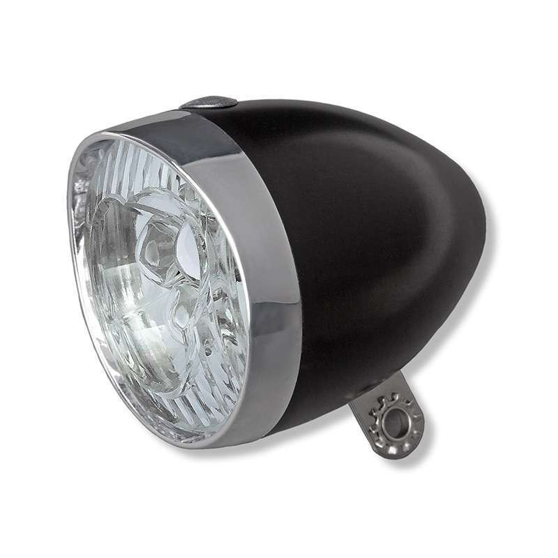 Deze zwarte Retro koplamp van LYNX beschikt over 3 super felle LED’s, welke zichtbaar zijn tot 600 meter. De koplamp wordt geleverd inclusief 3 AAA batterijen en wordt geleverd op een nette hangkaart. Eenvoudig te bevestigen. De koplamp bevat 11 LUX.