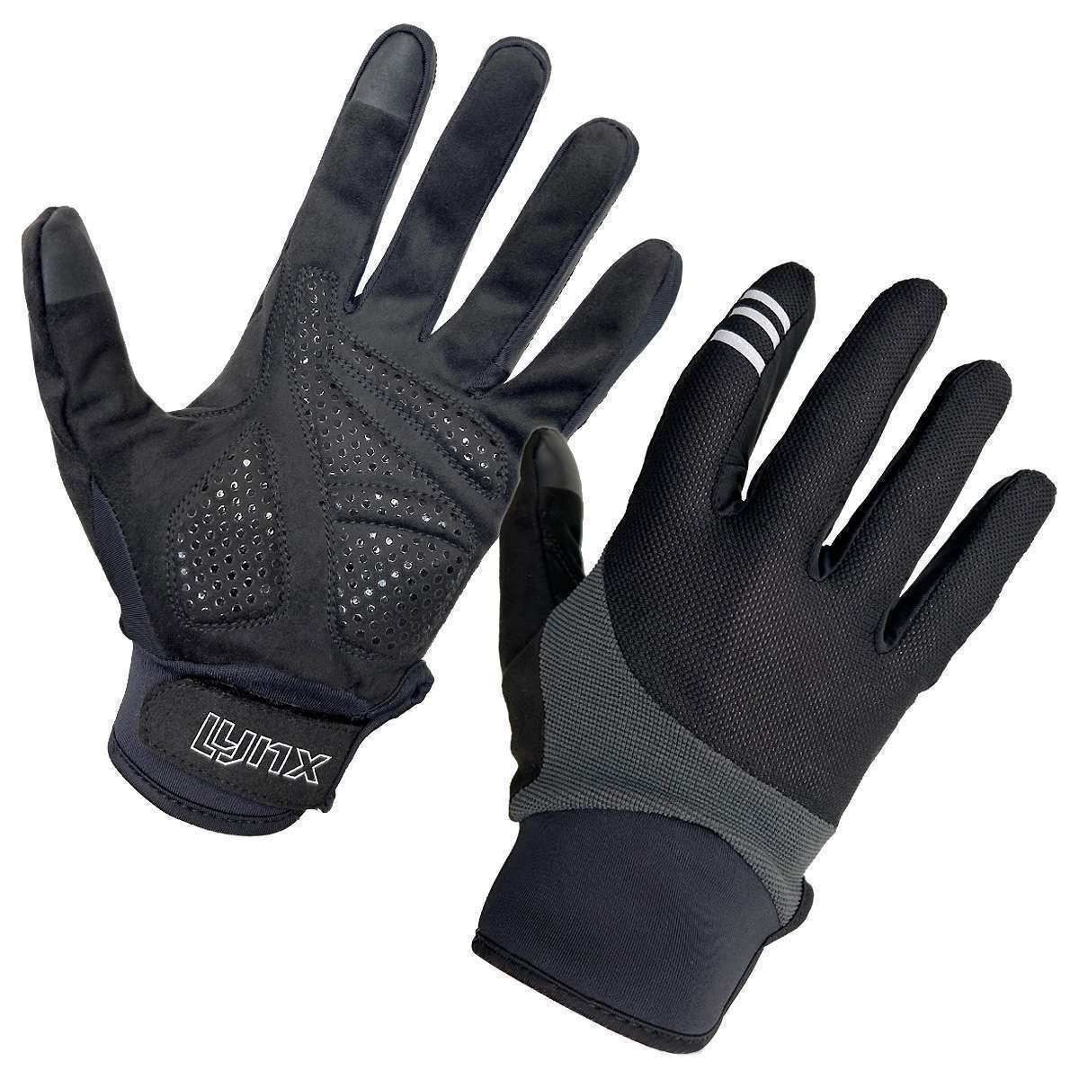 Met de MTB handschoenen van Lynx in de maat L, heb je meer controle en comfort tijdens het trotseren van steile hellingen en afdalingen. Het zachte suède aan de binnenzijde heeft bij de handpalm een 2 millimeter dikke schuim padding om vibraties te verminderen. Op deze schuim padding zijn anti-slip stippen aangebracht, welke zorgen voor goede grip op het stuur. Het Lycra Mesh materiaal aan de achterzijde van de handschoen is elastisch en luchtig, wat de handschoenen licht, flexibel en ademend maakt. De Lycra Mesh loopt vervolgens over naar Spandex en eindigt in een Neopreen elastisch manchet. De klittenbandsluiting zorgt voor een nauwe aansluiting om de polsen. De vingertoppen van de duim- en wijsvinger zijn geschikt voor het bedienen van touchscreens. De MTB handschoenen kunnen gewassen worden op 30 graden.
