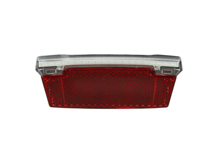 Upgrade je e-bike met het Simson E-bike achterlicht “Spectra”. Het achterlicht is geschikt voor 6-48 Volt en past met de 50-80 millimeter montage op iedere bagagedrager. De lamp beschikt over een IPX4 keuring, wat wil zeggen dat de lamp waterdicht is voor spatwater uit alle hoeken. Daarnaast is deze lamp gekeurd volgens de Duitse richtlijnen en beschikt deze dus over de k-keur. Specificaties: Kleur: rood, zwart Lengte montageplaat: 50 – 80 mm Geschikt voor: 6V – 48V Type fiets: E-bike Spatwaterdichtheid: IPX4 Goedkeuring licht DE: StVZO