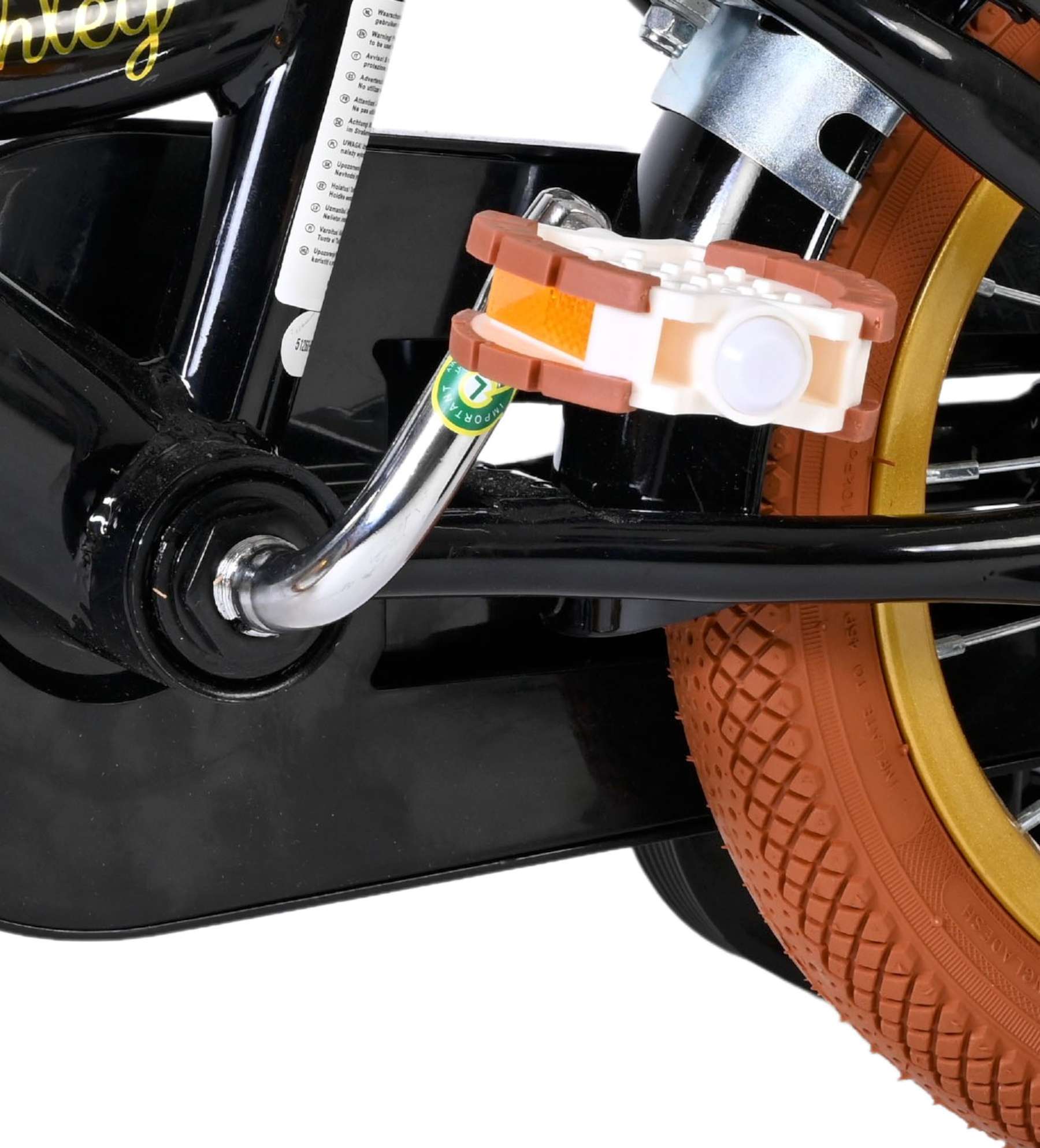 De Volare Ashley 12 inch kinderfiets is een vrolijke en comfortabele fiets die helemaal klaar is voor de eerste fietservaringen van je kind. Deze mooie zwarte fiets is uitgerust met twee handremmen (geen terugtraprem), waardoor je kind op een veilige en vertrouwde manier leert remmen. De afneembare zijwielen zorgen voor extra stabiliteit in het begin en kunnen eenvoudig verwijderd worden zodra je kind klaar is om zelfstandig te fietsen.