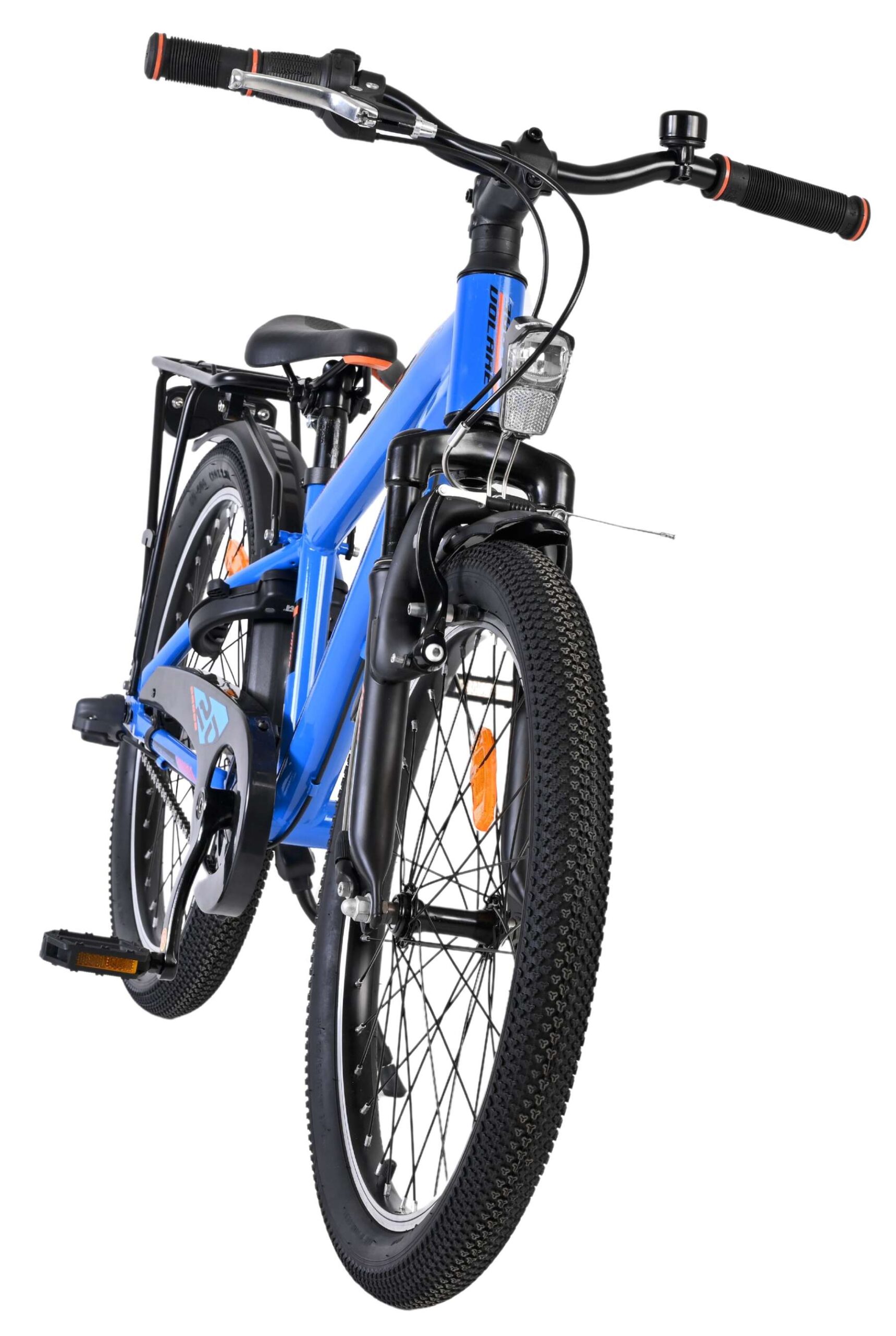 Ook aan praktisch gemak is gedacht: de donkerblauwe Volare fiets heeft een handige achterdrager om spullen eenvoudig mee te nemen, een zacht en comfortabel zadel, een stevige standaard én een stevig slot. Dankzij de extra lange zadelpen groeit de fiets langer mee met je kind. Let op: het stuur is niet in hoogte verstelbaar.