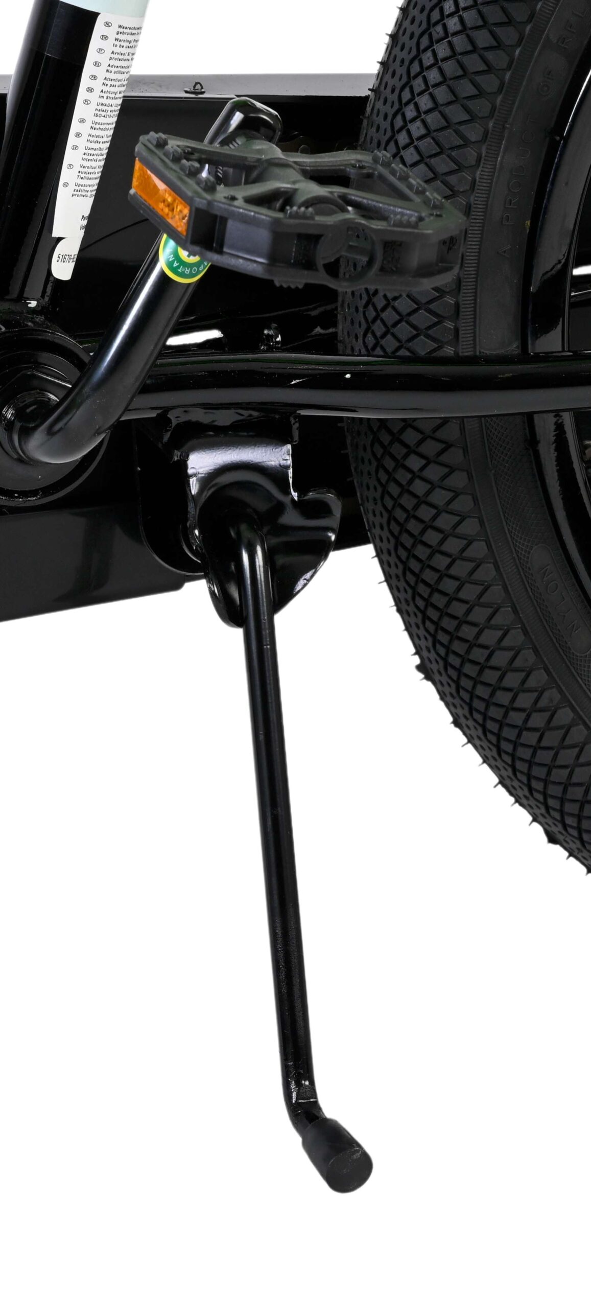 Veiligheid staat voorop! Het sterke stalen frame heeft met de stoere groen/zwarte kleurstelling een zeer sportieve uitstraling. Met de bidon in de praktische bidonhouder heeft uw kind altijd iets te drinken bij zich. De spatborden houden al het opspattend vuil tegen. Om vaart te minderen heeft de fiets zowel een hand- als terugtraprem. Ter bescherming van de kleine vingertjes is de kettingkast gesloten. De fiets heeft zijwielen en een stevige standaard.