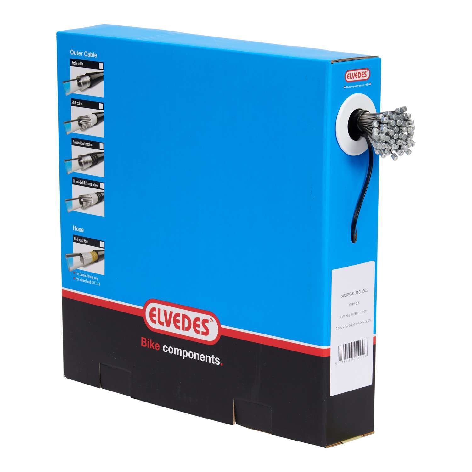 Deze schakel binnenkabel van Elvedes is alleen geschikt voor Shimano en SRAM en bevat een N-nippel. De roestvrije Slick versnellingskabel is voorgerekt, wat ervoor zorgt dat er sneller geschakeld en directer geremd kan worden en daarnaast hoeft de derailleur niet meer bijgesteld te worden na verloop van tijd. Verpakt per 100 stuks in een volume doos, die uitgerust is met een gemakkelijk treksysteem die ervoor zorgt dat de kabels gemakkelijk uit de doos gehaald kunnen worden zonder in de knoop te raken. Lengte 2250 mm, diameter 1,1 mm.